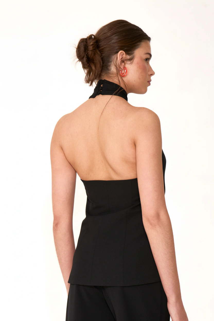 Espalda descubierta que le suma un toque sensual sin perder sofisticación. Ideal para looks del día a la noche.