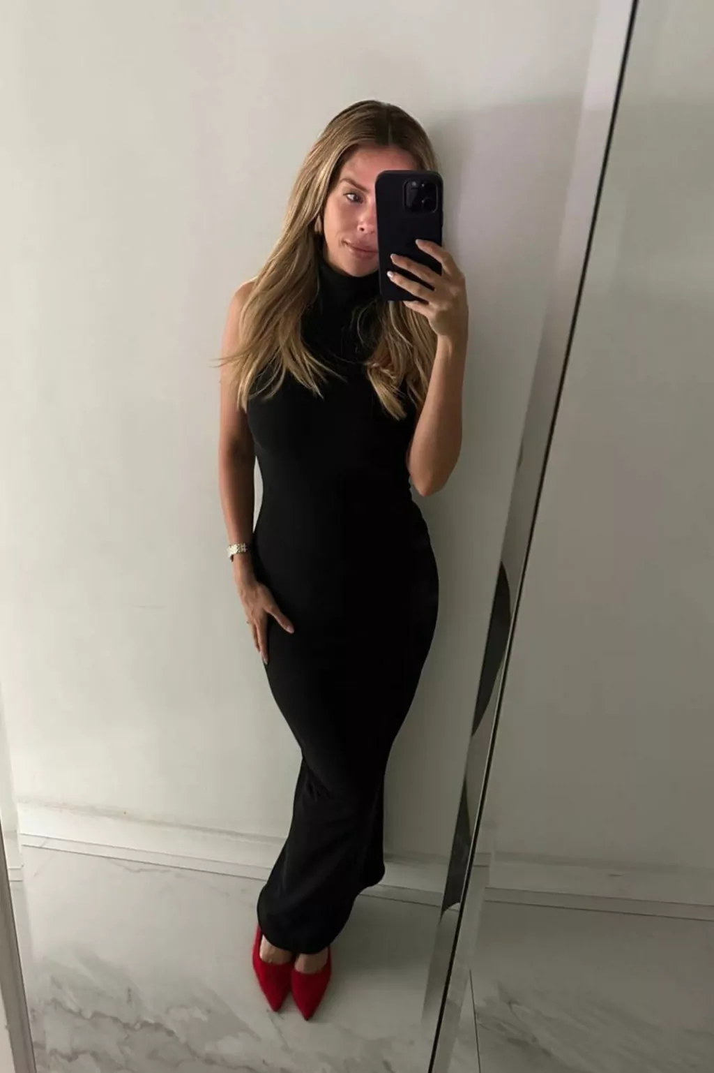 Este vestido largo de morley elastizado combina comodidad y estilo sin esfuerzo. Su diseño musculosa con polera le da un toque moderno, mientras que el *tajo trasero* asegura movimiento y comodidad en cada paso.