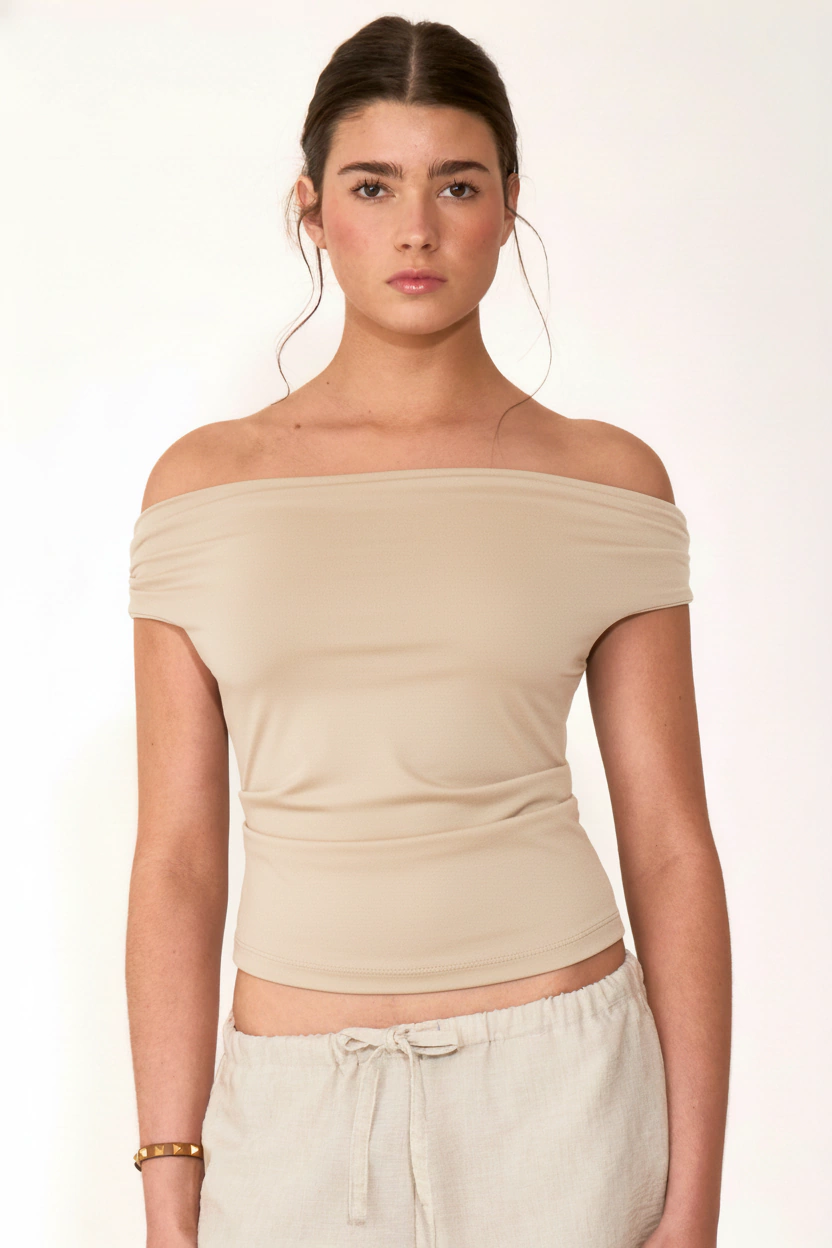 Descripción: top de lycra elastizada con frunce en laterales para crear un efecto ajustado tipo cinturilla, los hombros los podes adaptar con prefieras (efecto buche, hombros al aire o musculosa)